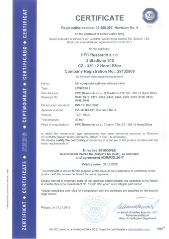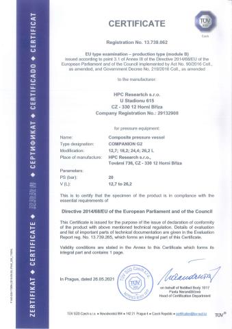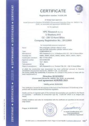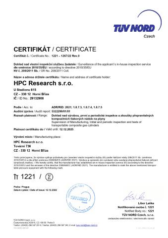 HPC Research is certified and continuously supervised by TUV SUD Czech notified body. In-house inspection service undergoes regular audits from the notified body.